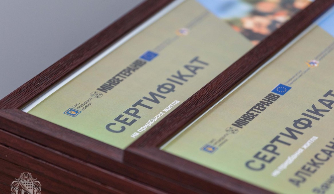 Вручення сертифікатів на житло стало можливим завдяки Президенту України Володимиру Зеленському, Кабінету Міністрів України, Міністерству у справах ветеранів України за фінансової підтримки Європейського Союзу в рамках реалізації інструменту Ukraine Facility.